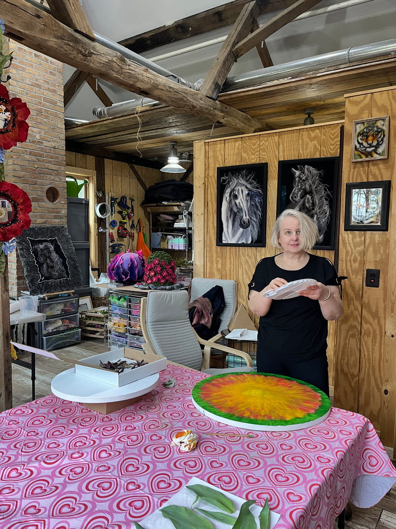 Creating such sculptural works requires deep knowledge and many years of experience, which Alla brings with over 30 years of artistic practice and Milana with more than 10. Each wool sculpture is created entirely by us - Alla and Milana Borovskaia - in our studio in Maryland, USA. Together, we have devoted over 100,000 hours to transforming sheep’s wool into innovative hand-felted art.